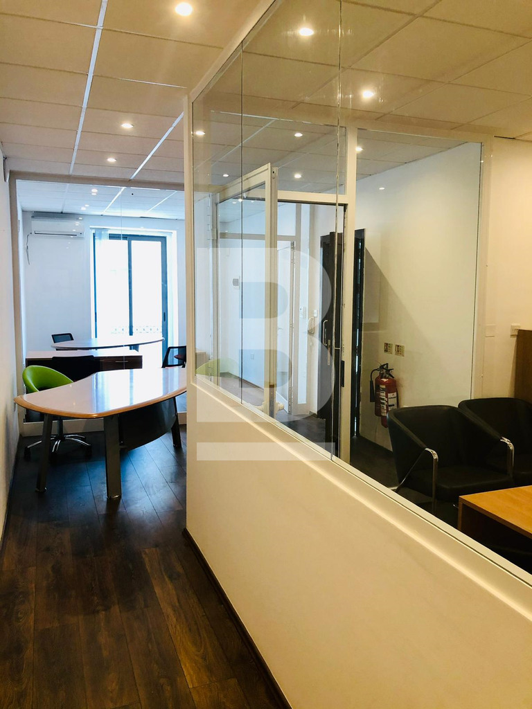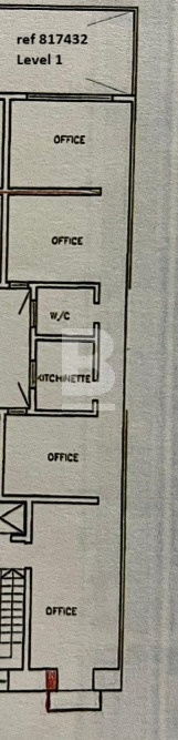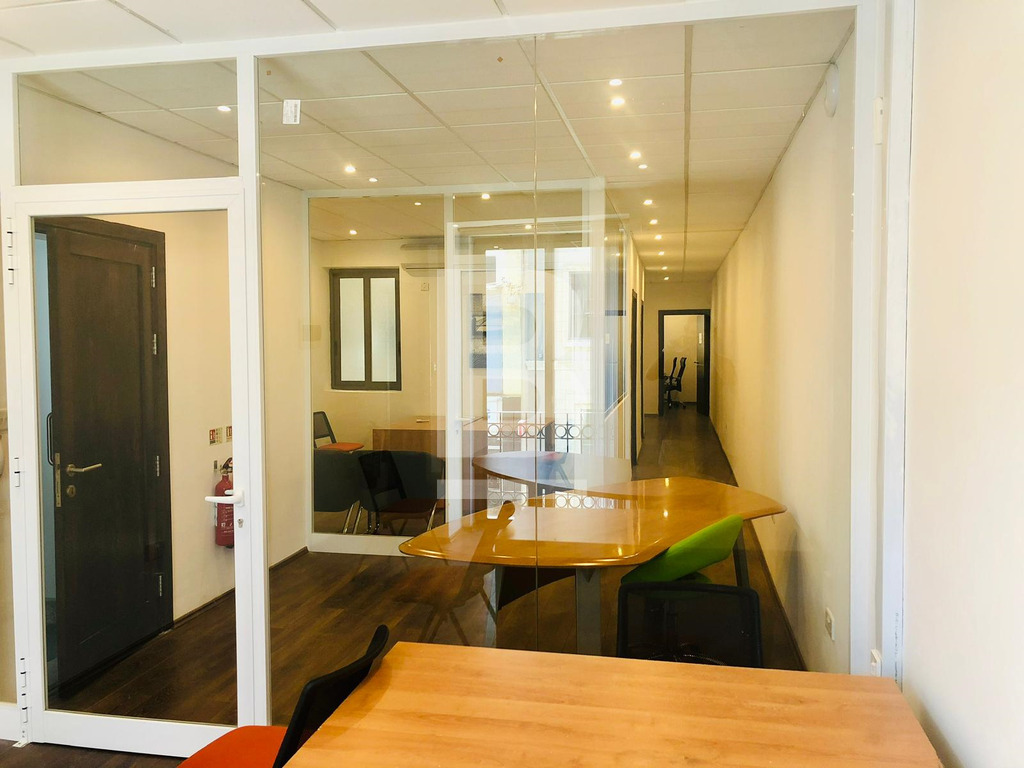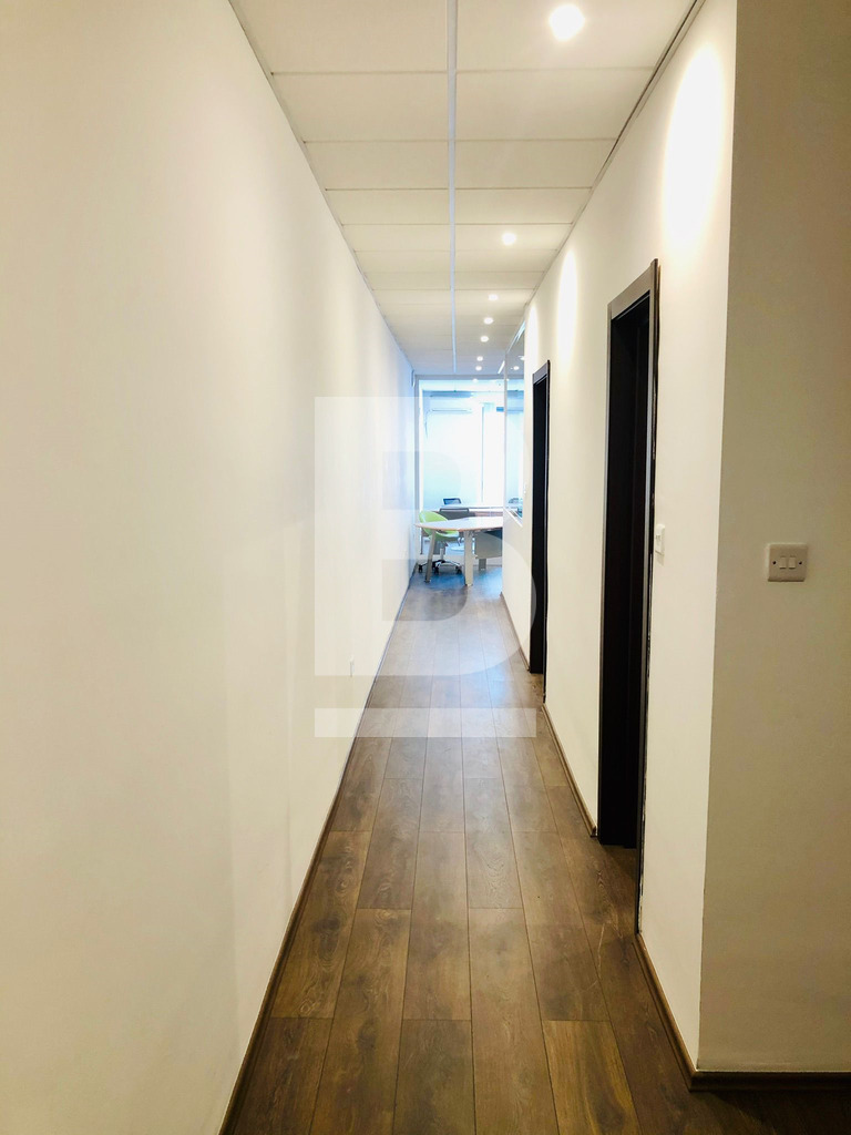 Well-laid-out office comprising four separate rooms, ideal for private offices or meeting spaces, complemented by a kitchenette and a bathroom. The layout offers flexibility for different business needs, making it suitable for professional services, administrative operations, or a small team setup.